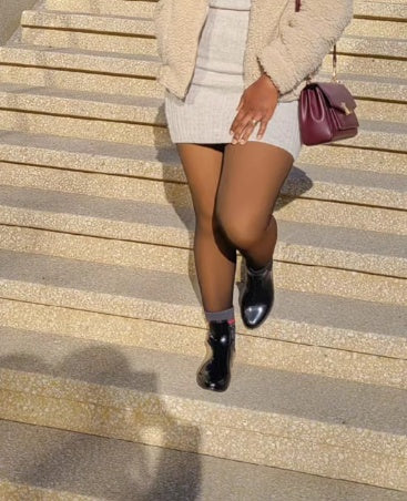 They're warm, comfortable, and fit snugly without feeling tight. The best part is they don't look bulky, so you can wear them with a mini skirt or shorts and still look stylish. They're great for both daytime and nighttime looks-whether you're going out or dressing up. They're not see-through, and the material feels high-quality. A versatile must-have for your winter wardrobe!jenna c.